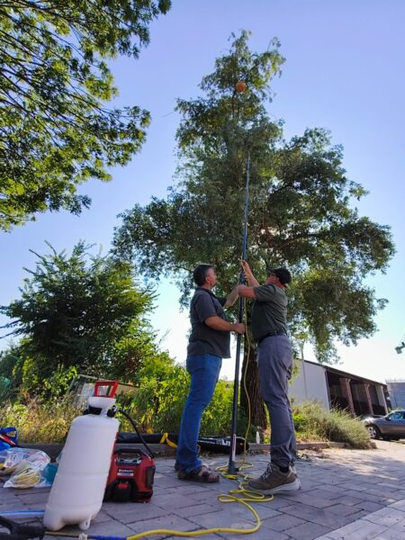 Data la sua esperienza nell’attività di neutralizzazione, Stefano ha tenuto la docenza della parte pratica del corso, durante la quale i partecipanti hanno simulato la neutralizzazione di un nido inattivo, che era stato posizionato su un albero a oltre 10 metri di altezza.